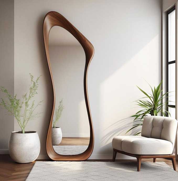 Asymmetrical Walnut Full Length Mirror
